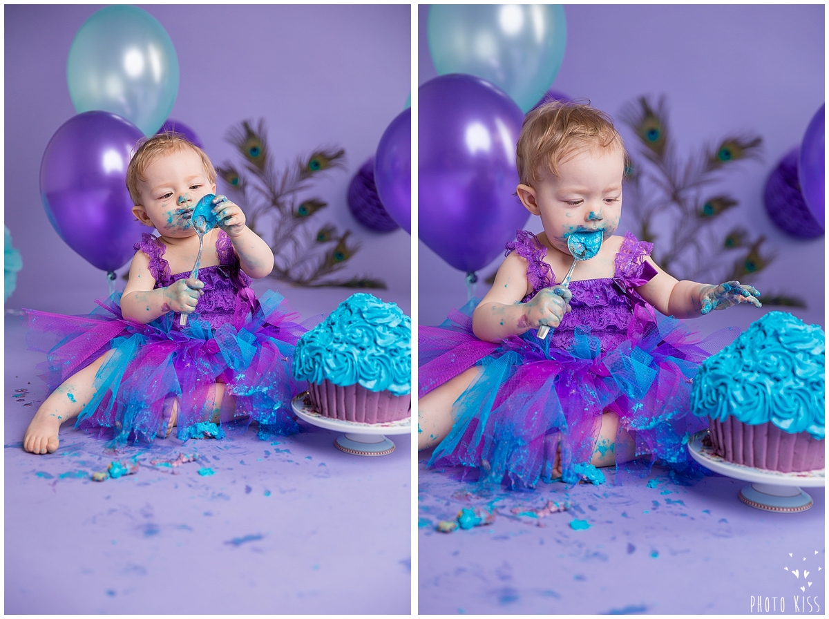 Ganz in Lila und Türkis konnten wir Rosalies Geburtstag mit einer genialen Cake-Smash Fotosession feiern.